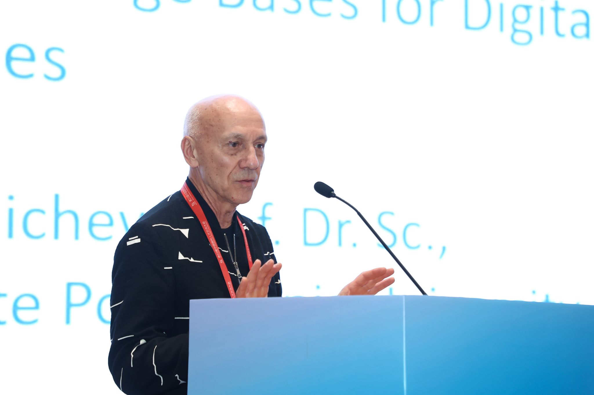 英国皇家工程院院士Constantinos Soutis、加拿大皇家院士姜晶,德国国家科学与工程院院士Heinrich Otthein,波兰华沙经济学院教授Artur Nowak-Far,俄罗斯自然科学院院士Kuzmichev Victor,意大利艺术研究院院士Claudio Rocca,巴西科学院院士袁锦昀,中国工程院外籍院士、新加坡国立大学教授Seeram Ramakrishna,哈萨克斯坦国家高等教育科学院院士、哈萨克斯坦一美国大学校长Assylbek Issakhov等分别聚焦“织物电子赋能大健康”“人工智能赋能大制造”“智能时代的艺术、设计与合作”三大前沿主题开展了精彩的学术交流。